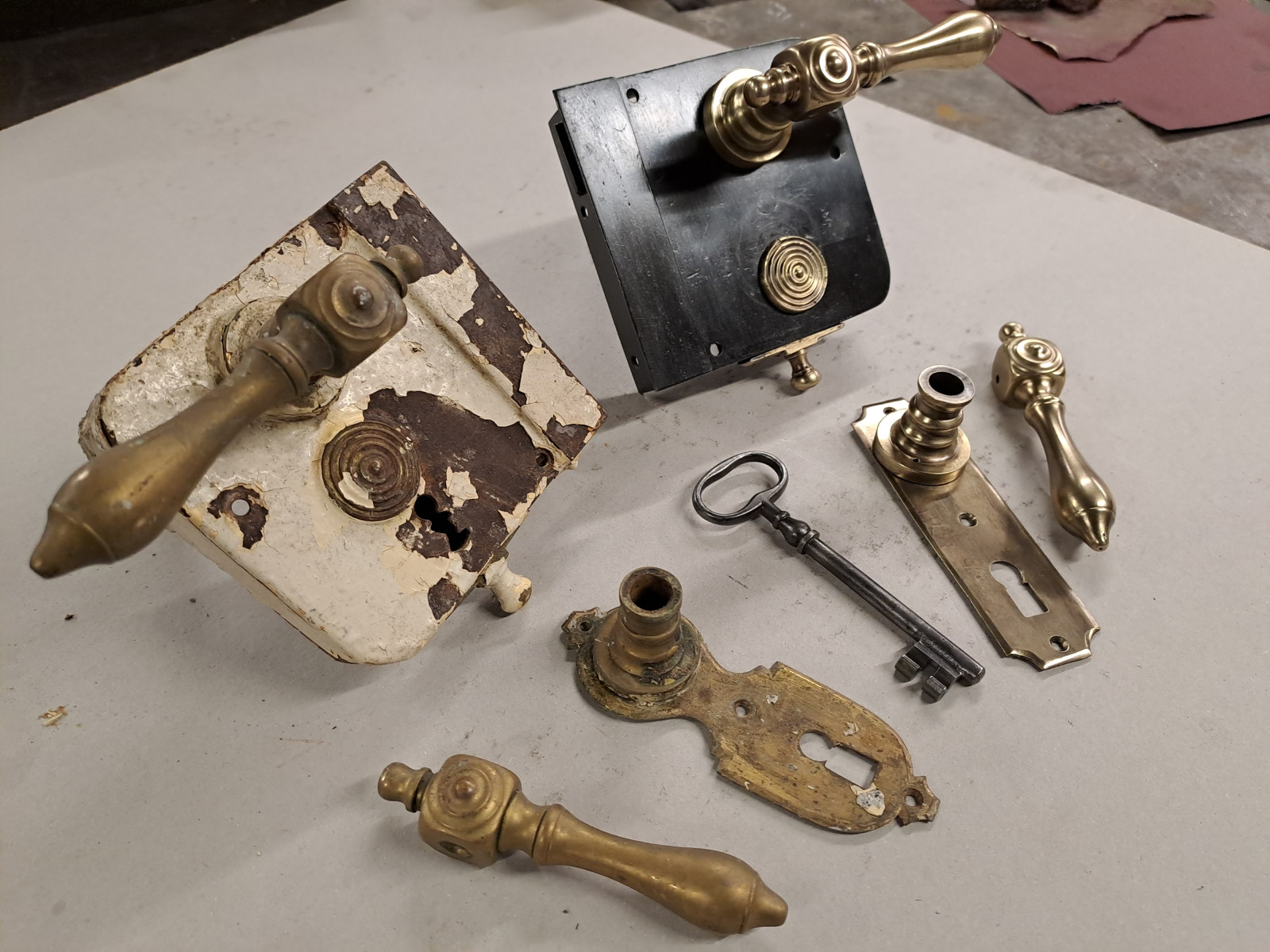 Bei der Sanierung alter Gebäude kommt der Einsatz moderner Beschläge oft nicht in Frage. Alte Türschlösser können meist mit wenig Aufwand wieder für viele Jahre funktionstüchtig gemacht werden. Wir fertigen auch komplett neue Beschläge in detaillierter Handarbeit und nach alten Vorlagen an. Unser stetig wachsender Lagerbestand an antiken Beschlägen und Schlössern bietet ausserdem die Möglichkeit, fehlende Stücke zu ersetzen.