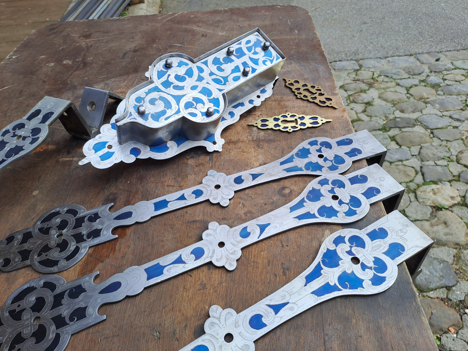 Bei der Sanierung alter Gebäude kommt der Einsatz moderner Beschläge oft nicht in Frage. Alte Türschlösser können meist mit wenig Aufwand wieder für viele Jahre funktionstüchtig gemacht werden. Wir fertigen auch komplett neue Beschläge in detaillierter Handarbeit und nach alten Vorlagen an. Unser stetig wachsender Lagerbestand an antiken Beschlägen und Schlössern bietet ausserdem die Möglichkeit, fehlende Stücke zu ersetzen.